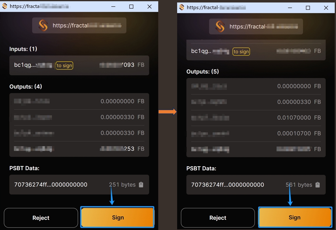 c) As in the first method, review the transaction details (inputs, outputs), and sign it to confirm the order.